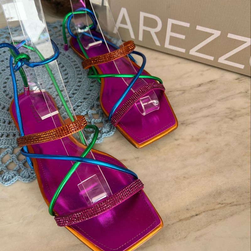 Sand lia Rasteira Arezzo Colorida Metalizada Tiras em Strass Desejo Ver o 2023 Sand lia Feminina Arezzo Nunca Usado 80460981 enjoei