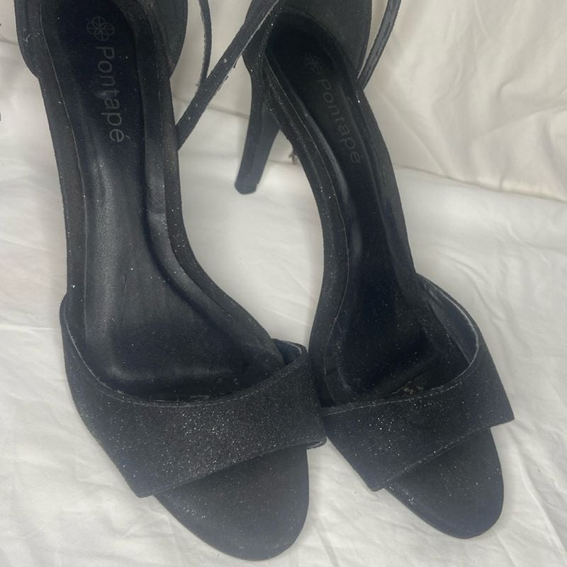 Salto Preto Brilhante Sapato Feminino Pontape Usado 92762459