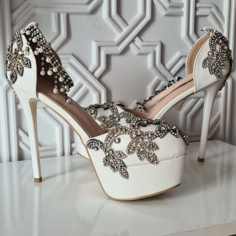 Sapato Noiva Strass Luxo 15cm Roupa de Casamento Feminina Nunca