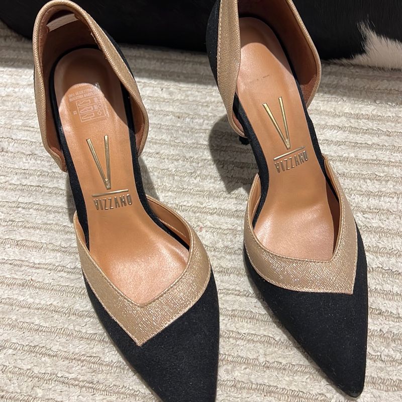 Sapato Preto e Dourado Salto Tamanho 35 Sapato Feminino