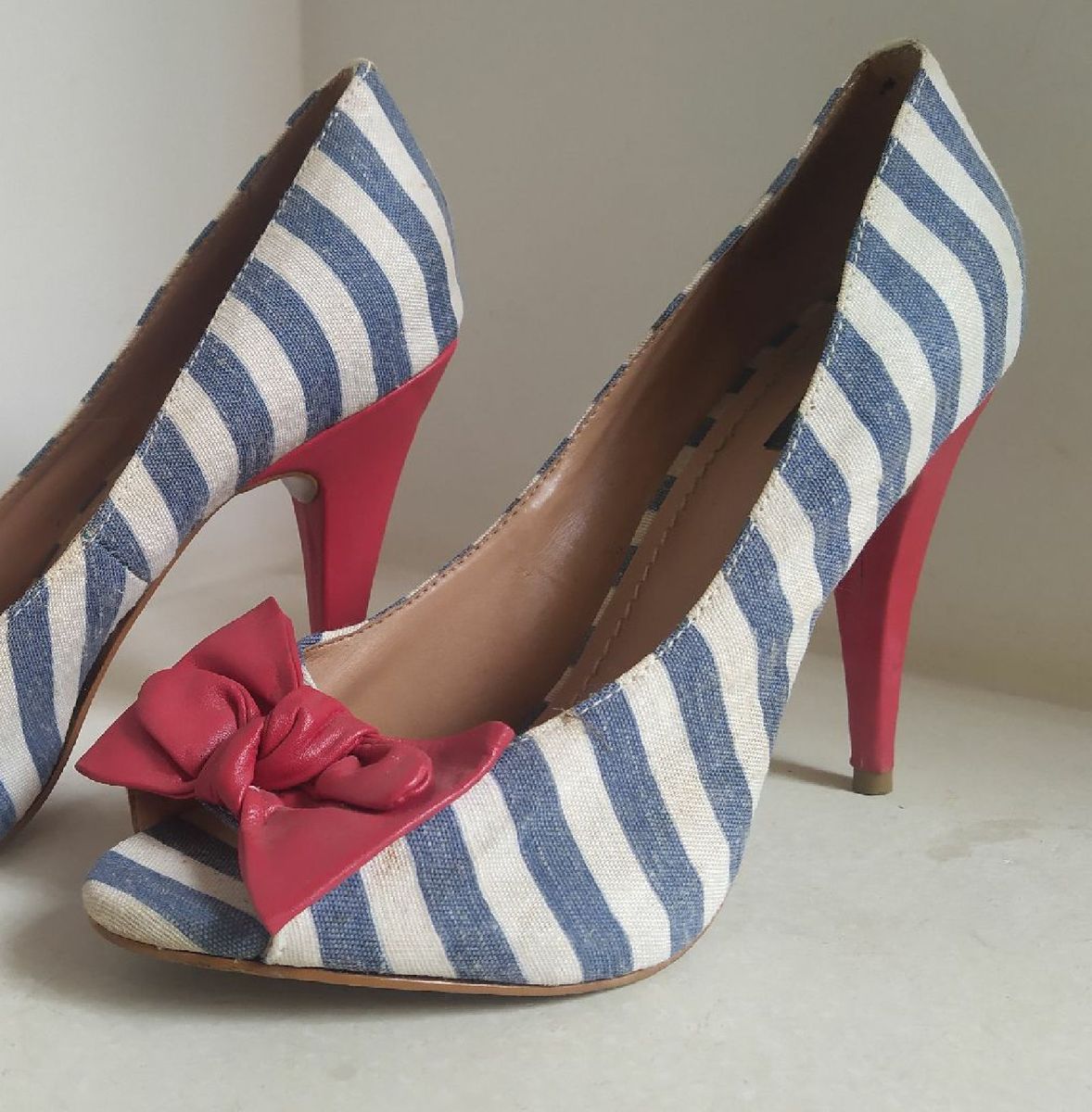 Sapato listrado azul clearance e branco, Saia Midi Listrada Branca e Vermelha Bolsa Azul Marinho Bolsas clearance