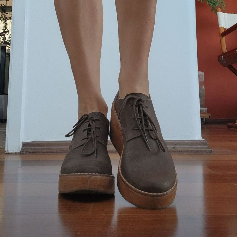 Sapato Oxford Cant o Plataforma de Madeira Sapato Feminino