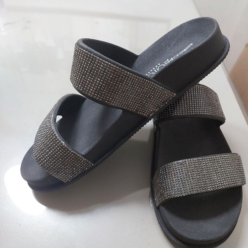 Sandalia Birken Preta com Strass Sonho Dos P s Sand lia Feminina