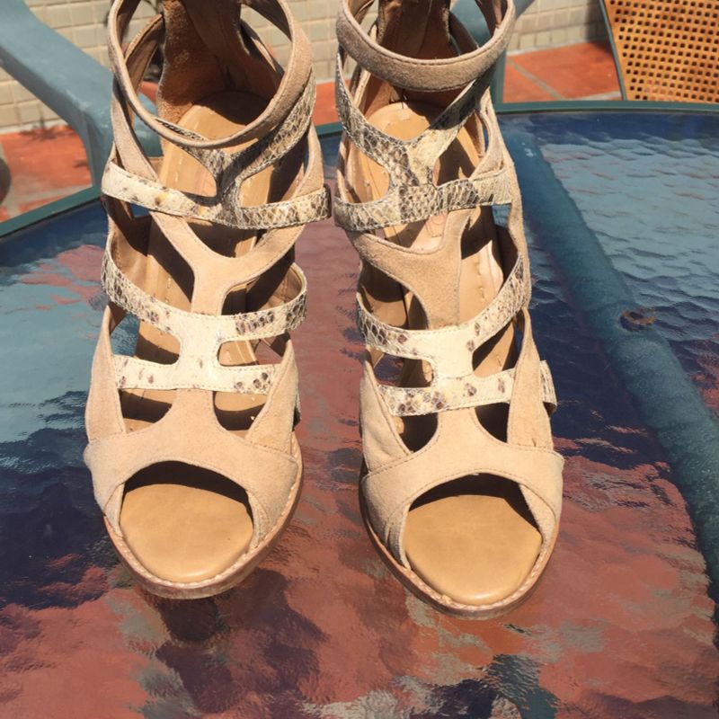 Sandalia de cobra clearance arezzo, Sand lia de Camur a Bege e Cobra Arezzo Sand lia Feminina Arezzo clearance
