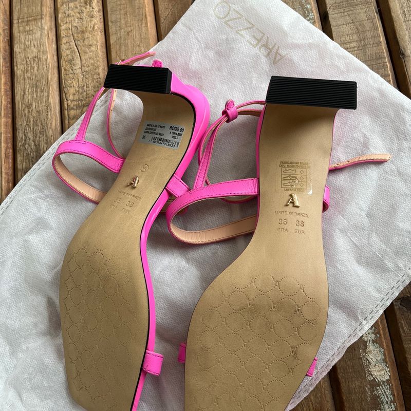 Sandalia tira fina clearance arezzo, Arezzo Sand lia Salto M dio Nobuck Preta Isabelli Seu Sapato clearance