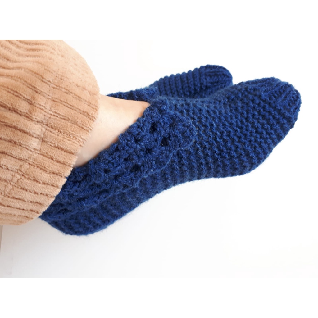 Botinha em tric para adultos feita com duas agulhas e costura somente no calcanhar