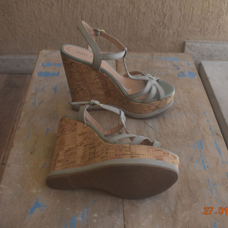Sand lia Anabela Salto de Corti a Marca Arezzo Cor Verde Claro
