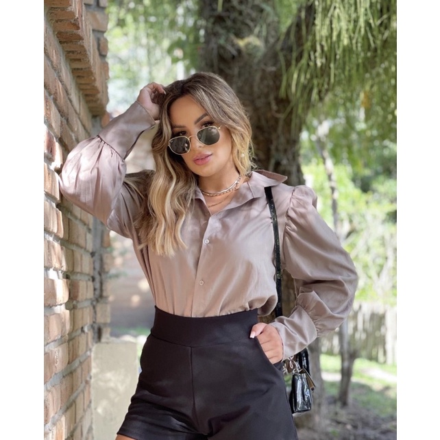 Camisa Feminina Social Manga Longa Princesa De Cetim