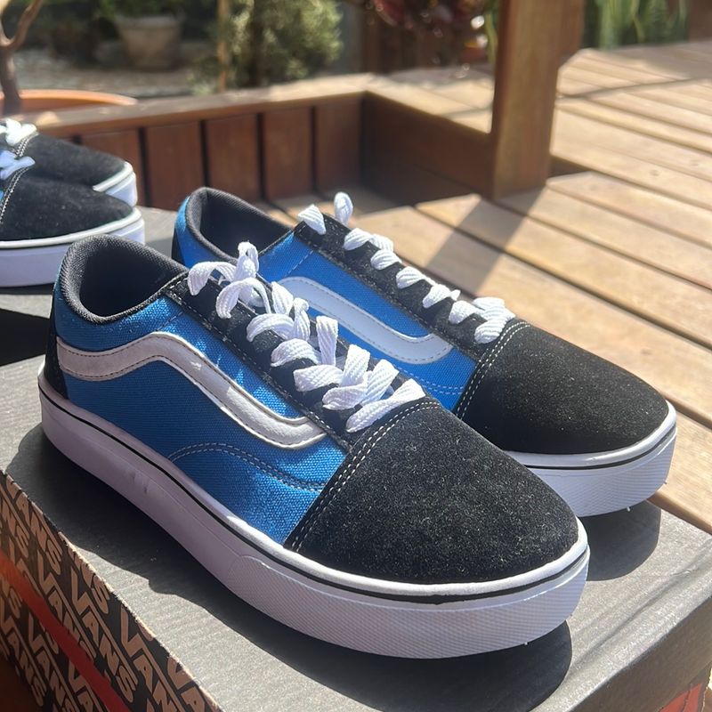 Vans Azul Preto Branco T nis Feminino Vans Usado 90657867 enjoei