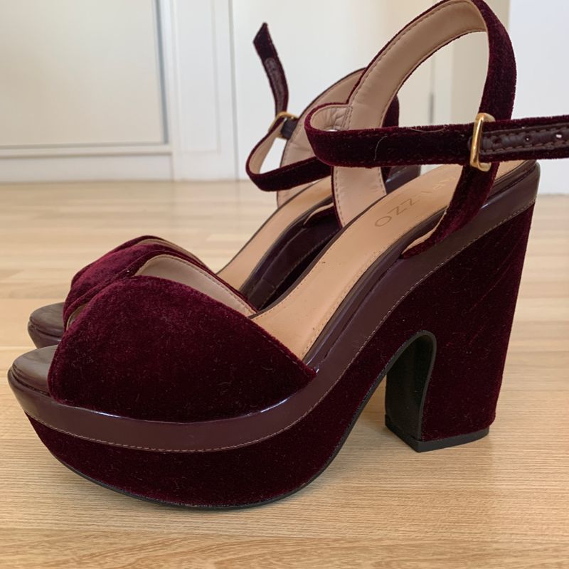 Sand lia Salto Grosso Arezzo Veludo Vinho Sand lia Feminina
