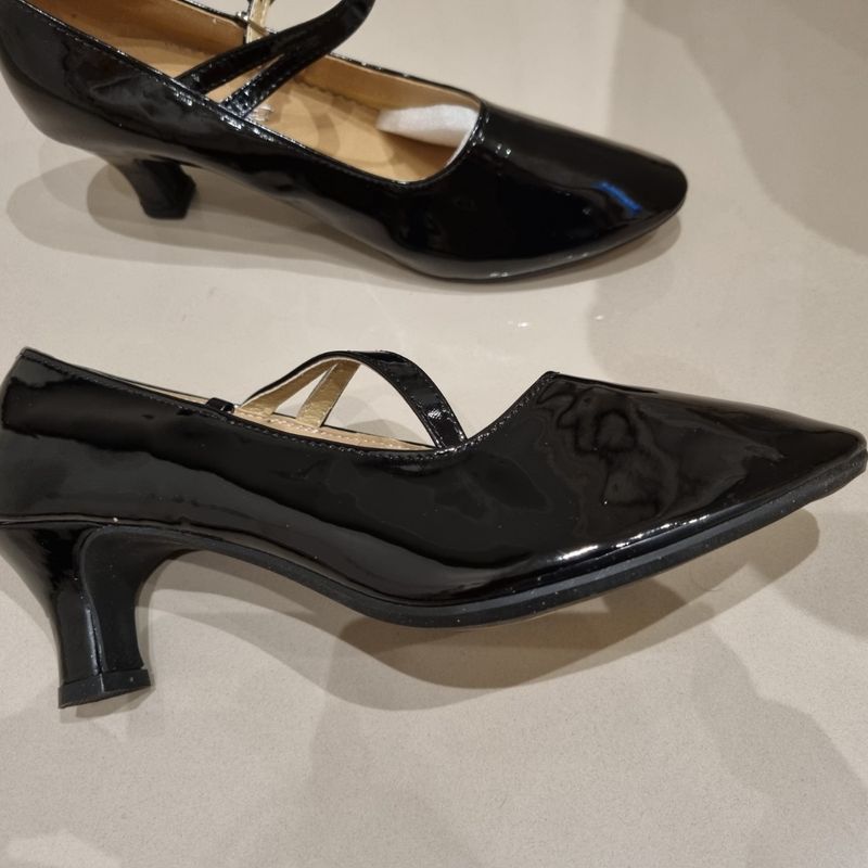 Sapato preto brilhante clearance feminino