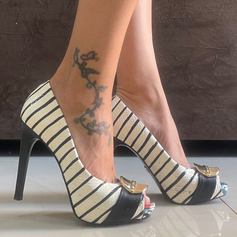 Scarpin Listrado Preto e Branco Tamanho 35 Marca Jorge Bischoff