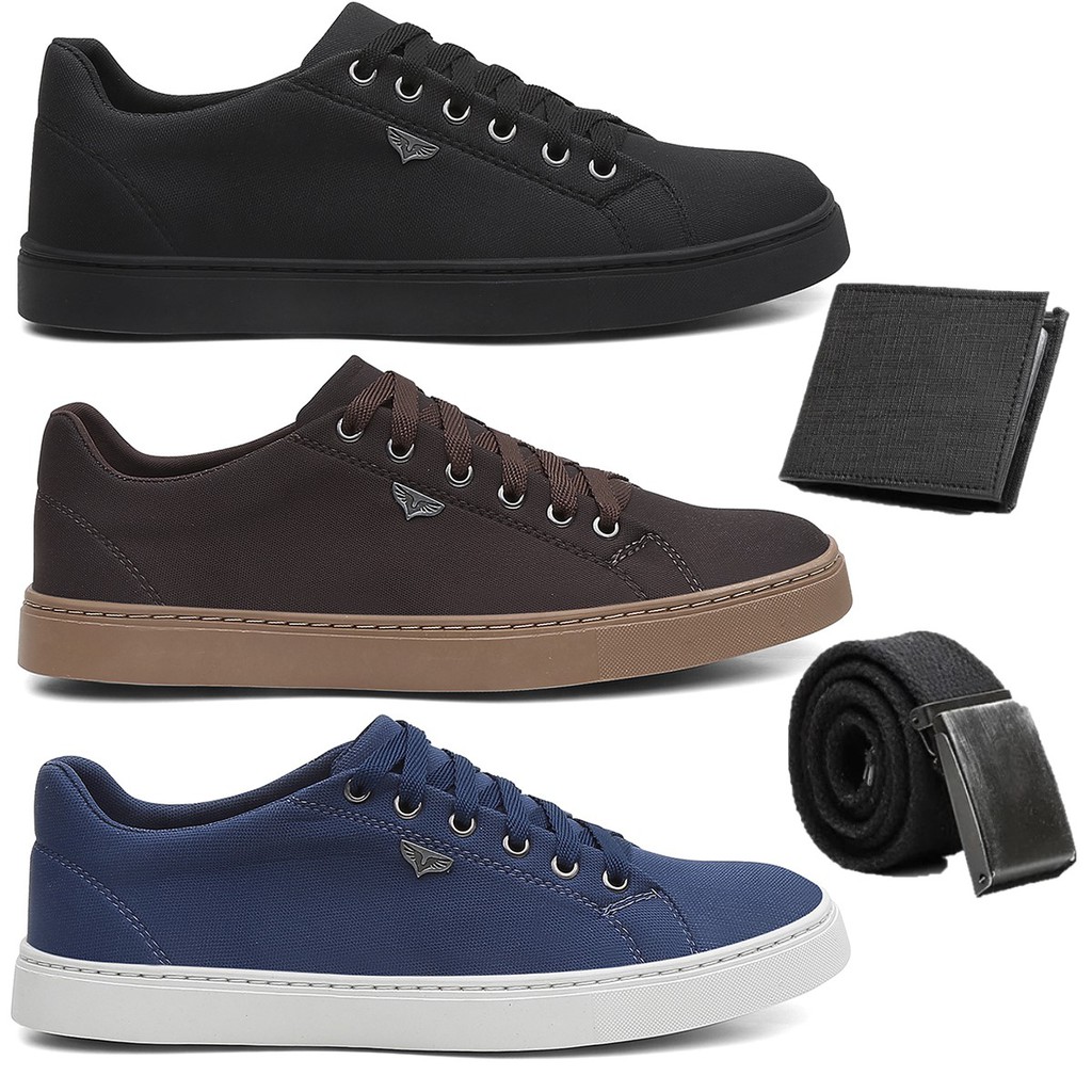 Kit 3 pares de sapatênis masculino clearance sapatofran com cinto ajustável e carteira