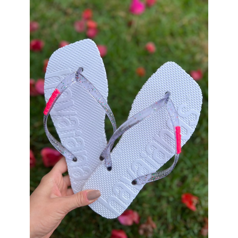 Chinelos clearance havaianas feminino, Chinelo Havaianas Feminino Preto Customizado Pedraria Azul clearance
