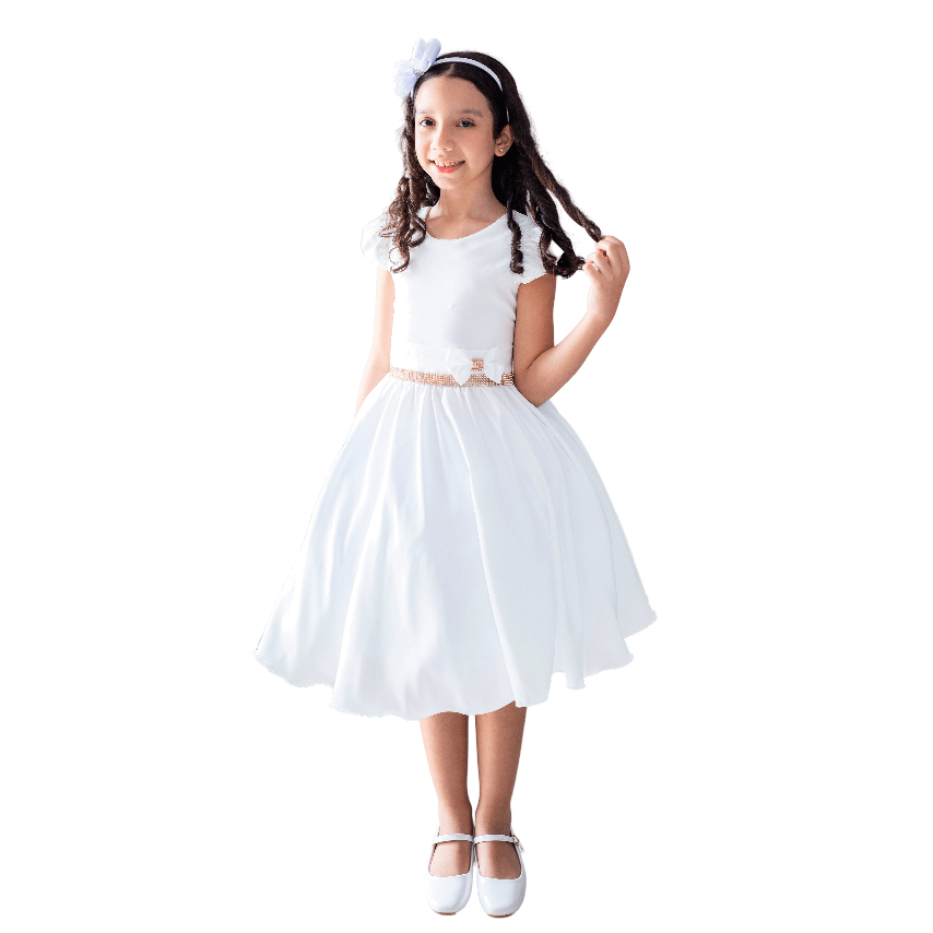Vestido Infantil Casual Off White Liso Daminha Primeira Comunh o