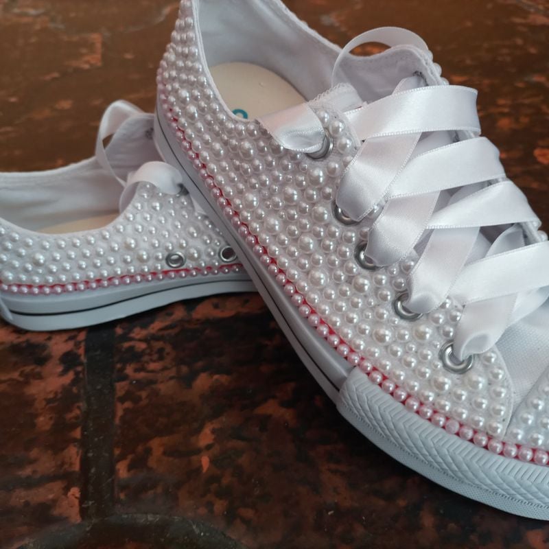 T nis All Star Personalizado Com P rolas E Cristais Elo7