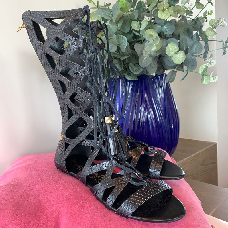 Sandalia preta carmen clearance steffens, Sand lia Rasteira Gladiadora Preta Carmen Steffens Sand lia clearance