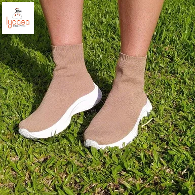 Bota cano curto feminina t nis botinha meia knit de malha at