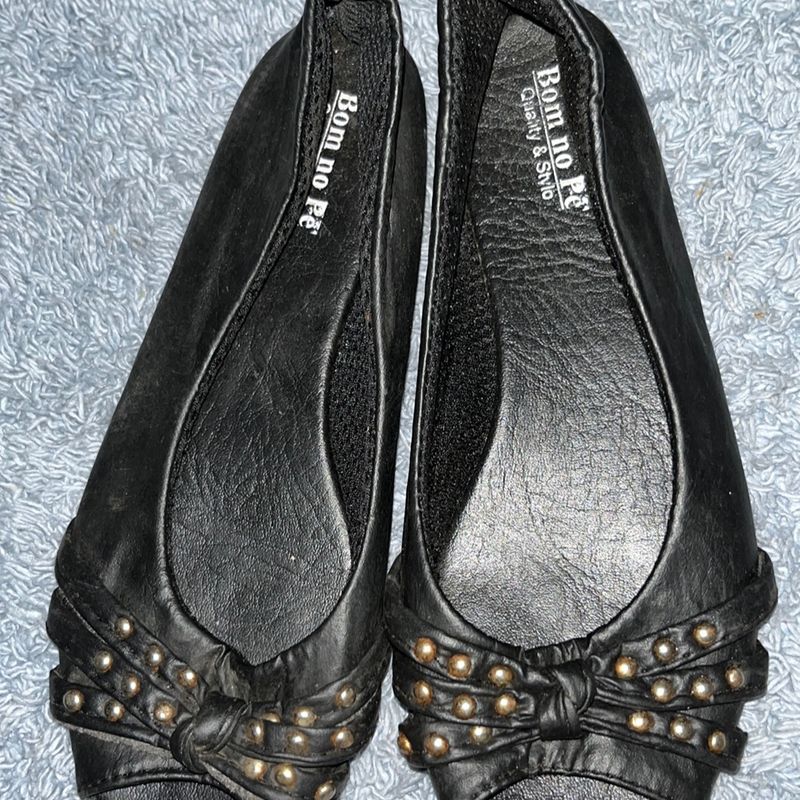 Sapatilha Preta Tip Toe com Tachinhas Bom No P Tamanho 35