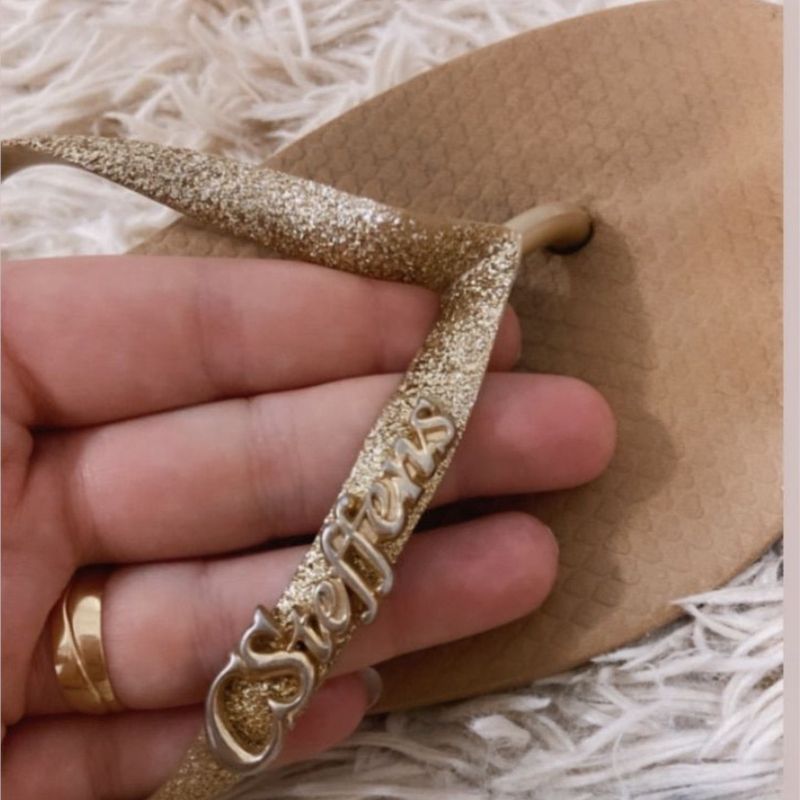 Chinelo Nude Dourado Carmen Steffens Rasteira Feminina Carmen