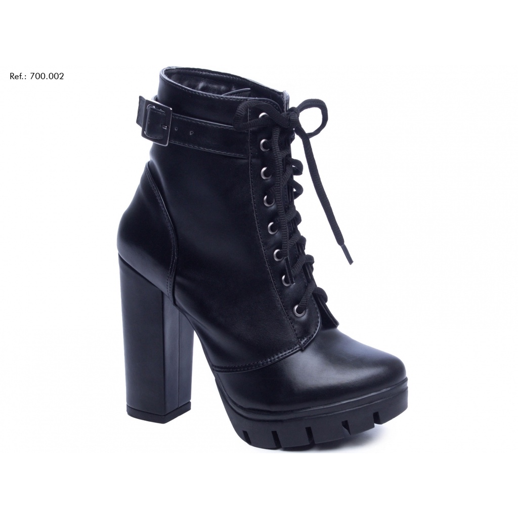 Bota cano curto salto clearance grosso com cadarço preta