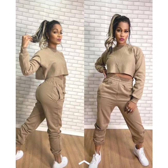 Conjunto moletom cropped manga longa e cal a jogger el stico