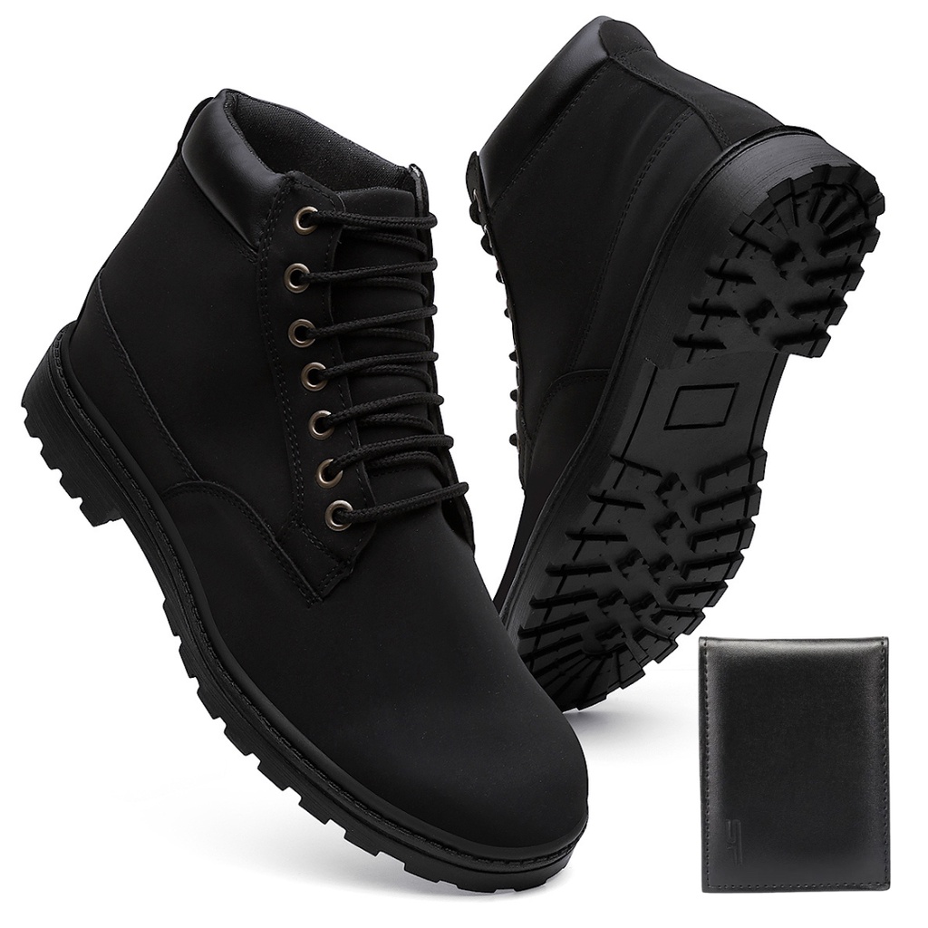 Bota Masculina Casual Couro Vegano Preta Cano Curto Lan amento