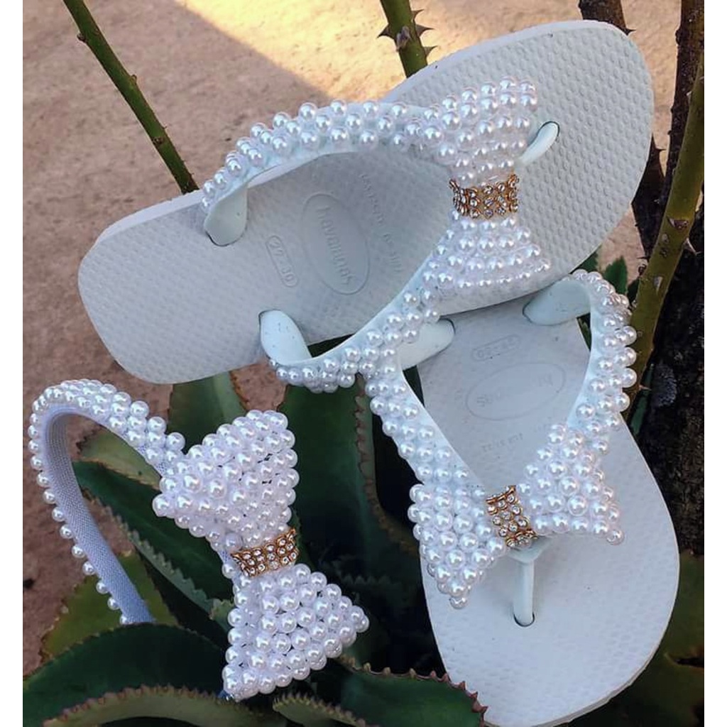 Kit Arquinho E Chinelo Bordado Com Perolas Shopee Brasil