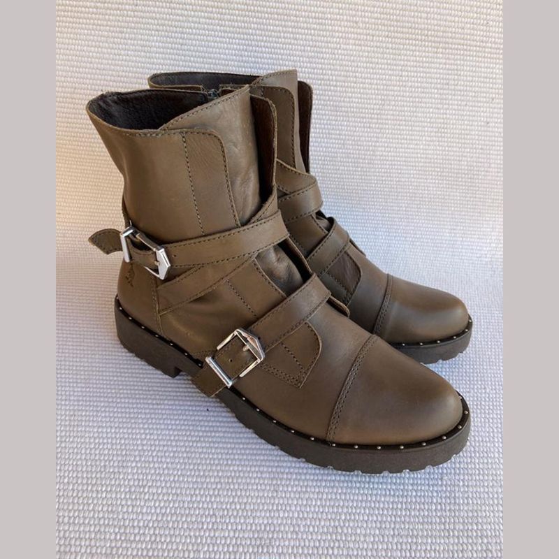 Bota de Couro Verde Musgo Tratorada Side Walk Bota Feminina Side
