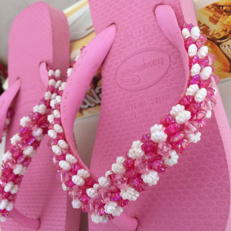 Chinelo Bordado com Perolas e Strass Elo7 Produtos Especiais