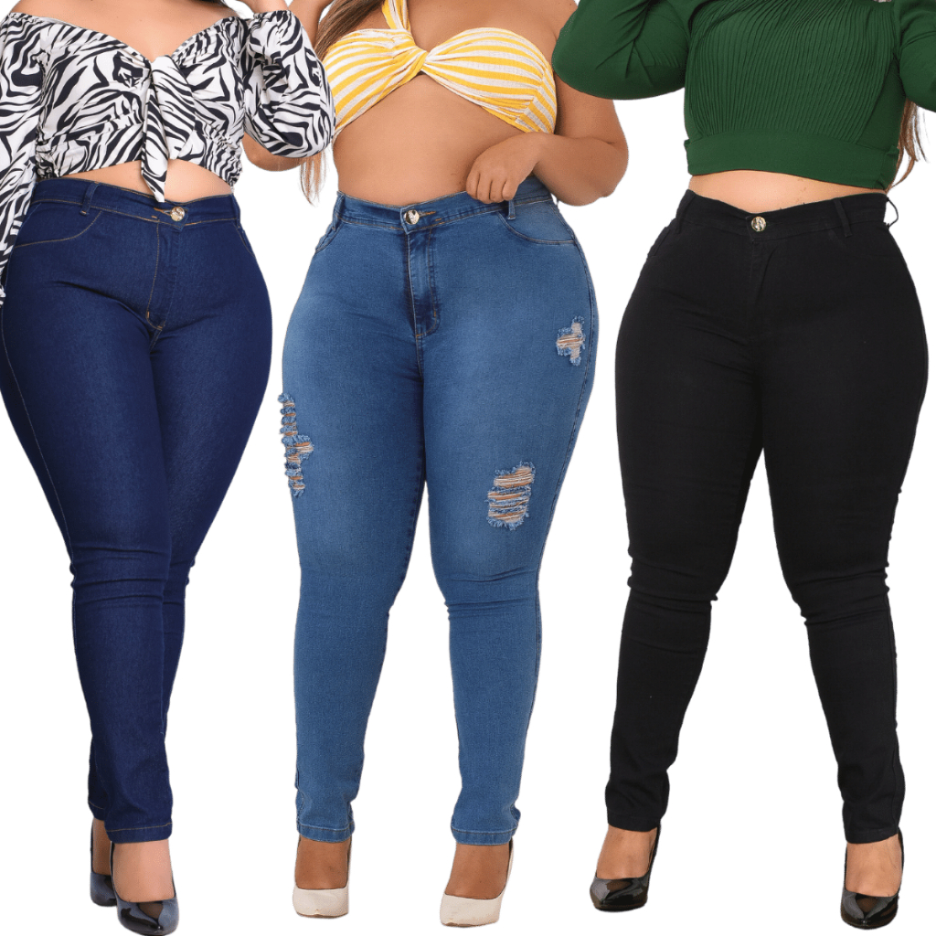 Cal a Jeans Feminina Plus Size Lycra Cintura Alta 48 50 52 54
