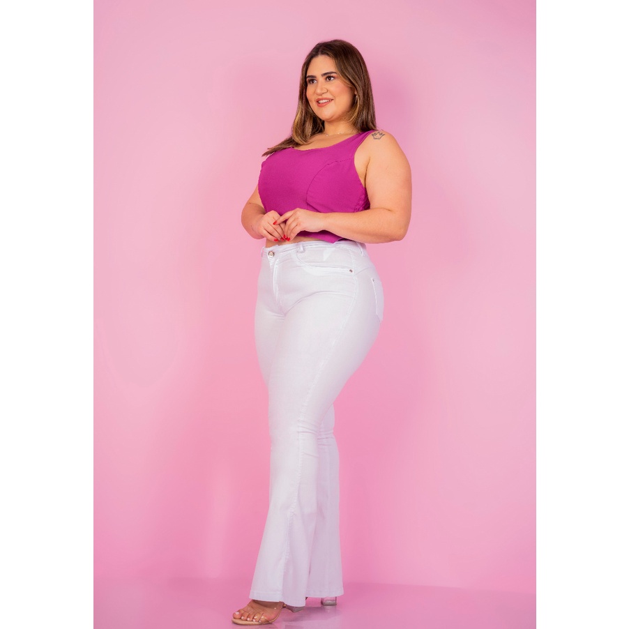 Cal a Flare Branca Feminina Plus Size com Lycra Cintura Alta em