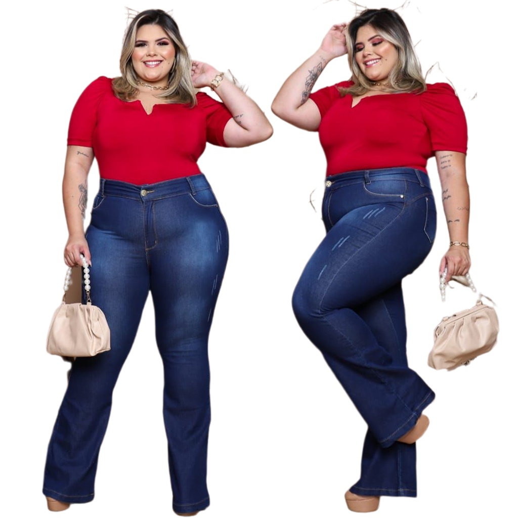 Cal a Jeans Flare Plus Size Boca de Sino Linha Premium Elastano