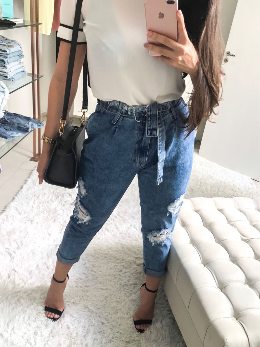Cal a Jeans Mom Feminina Estilosa Colcci Cintura Alta Shopee Brasil