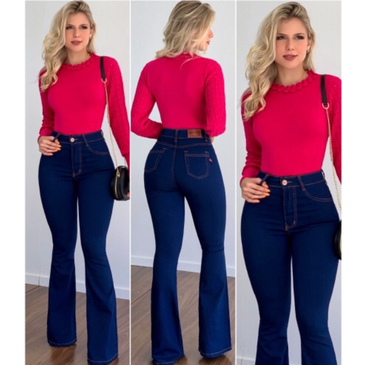 Cal a Flare Jeans Azul Escura Boca De Cino Cintura Alta Shopee