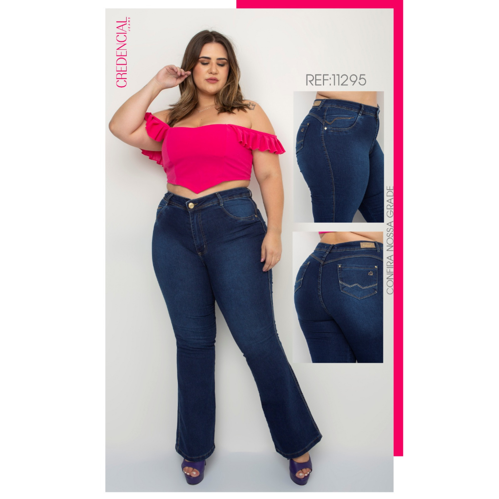 Cal a Lipo Jeans Flare Boca de Sino Plus Size Feminino Plus size