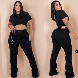 Cal a Flare Jeans Boca de Sino Plus Size Preta Shopee Brasil
