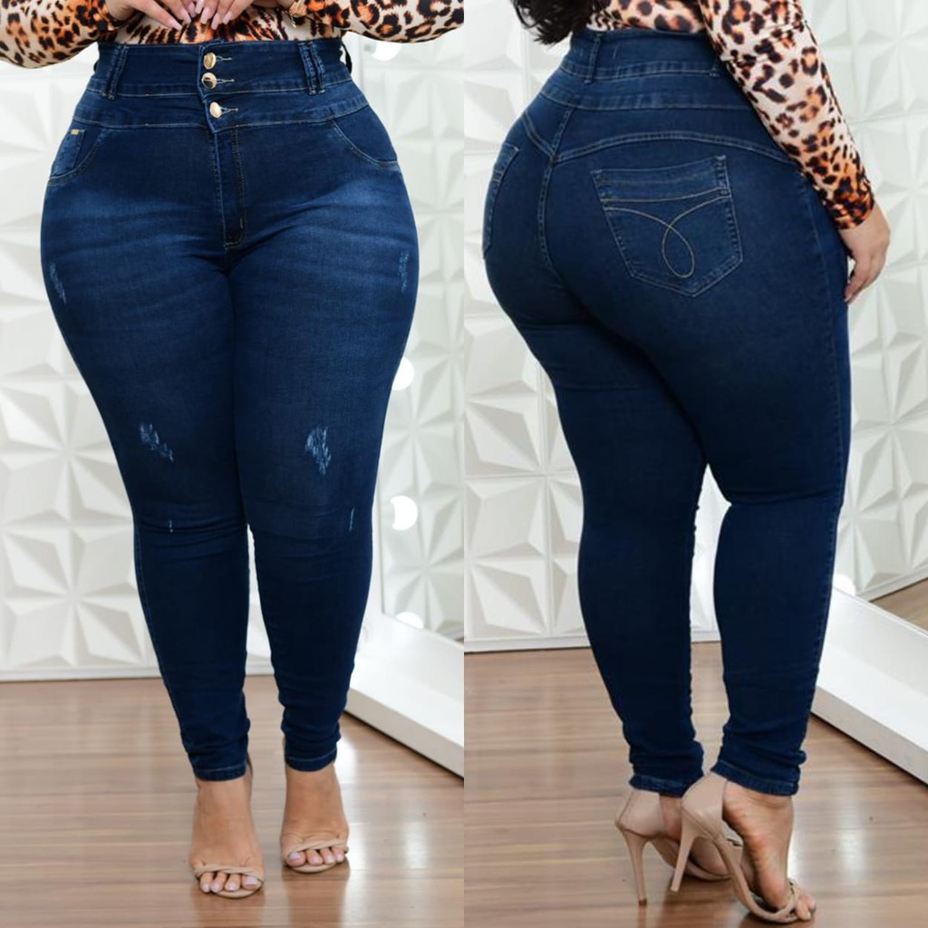 Calca Jeans Feminina Plus Size Cintura Alta Com Lycra Strech
