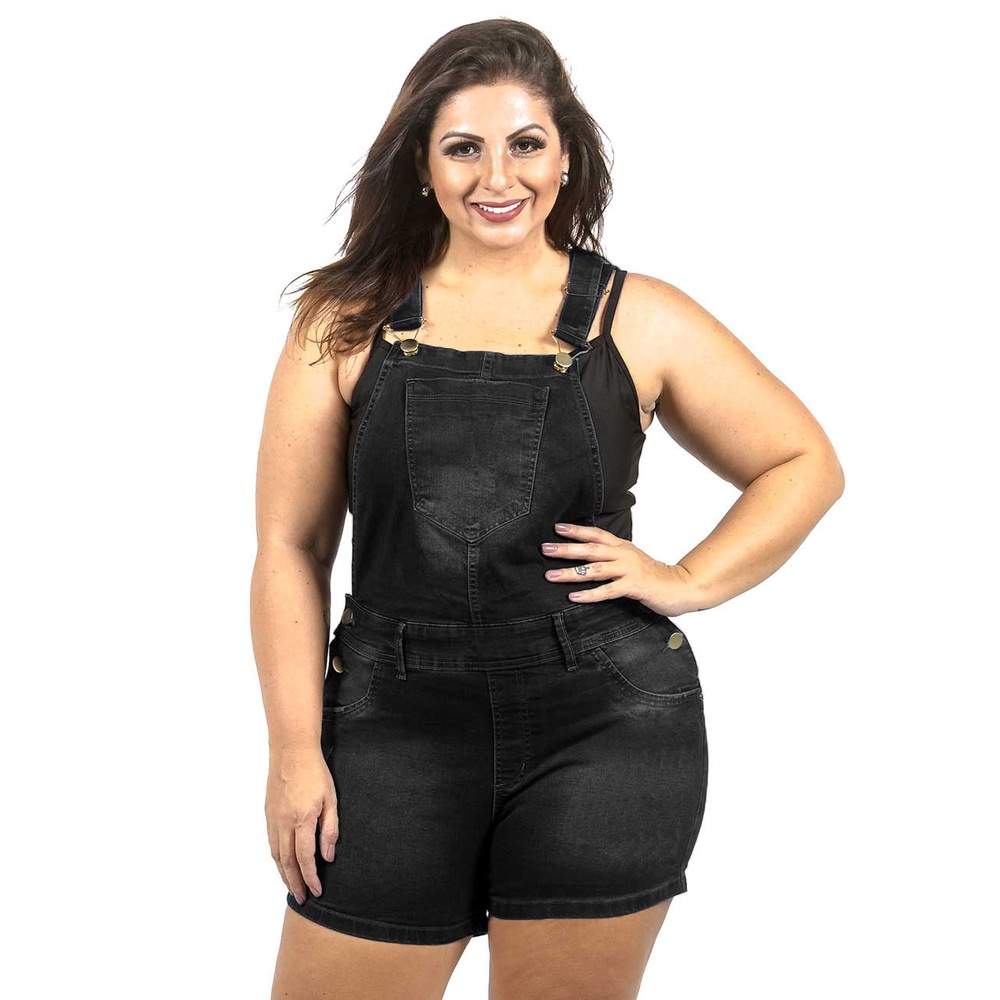 Jardineira plus size clearance preta, Jardineira Jeans Preta Basica Curta 44 ao 70 3363 VESTGRANDE clearance