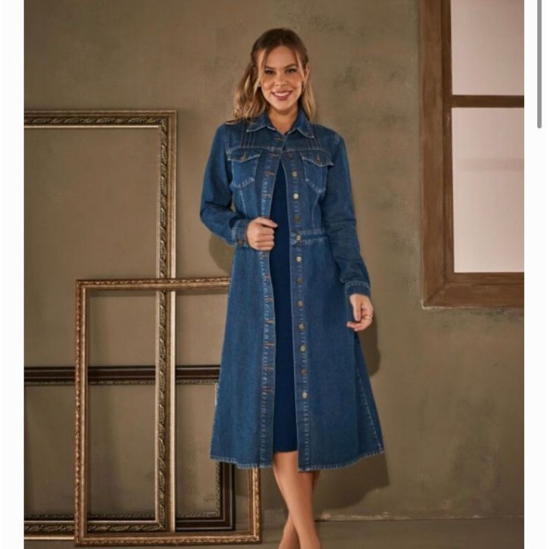 Sobretudo jeans feminino clearance plus size, sobretudo jeans via Tolentino 36 Shopee Brasil clearance