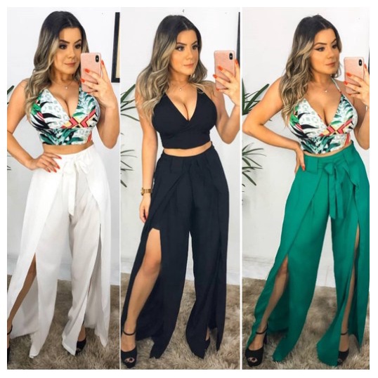 Calça clearance pantalona longa, Conjunto Moletom Feminino Cal a Pantalona e Blusa Cropped Manga clearance