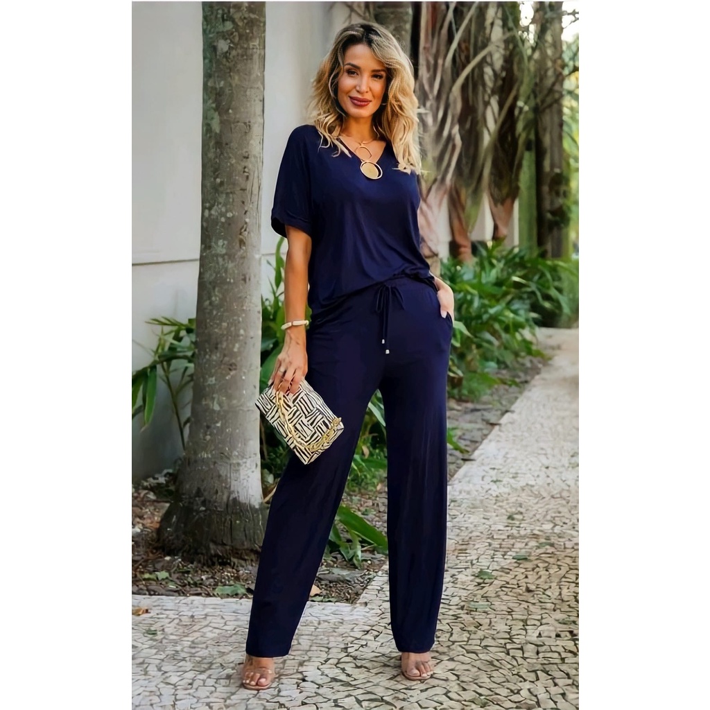 Conjunto Cal a Pantalona e Blusa Decote V na Viscolycra Shopee