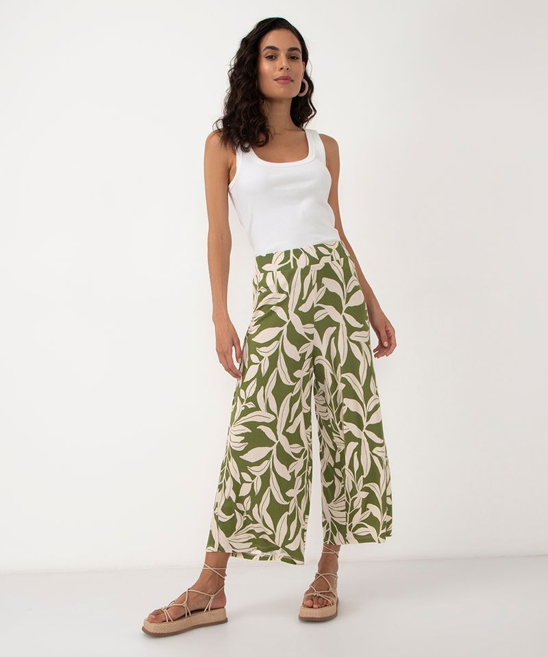 cal a pantacourt floral cintura alta c s el stico off white C A