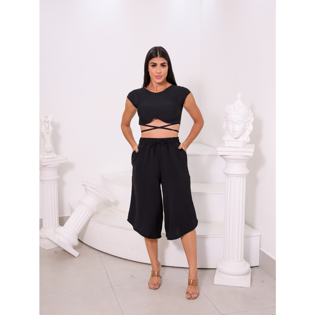 Cal a Pantacourt Preta D closet Moda Feminina