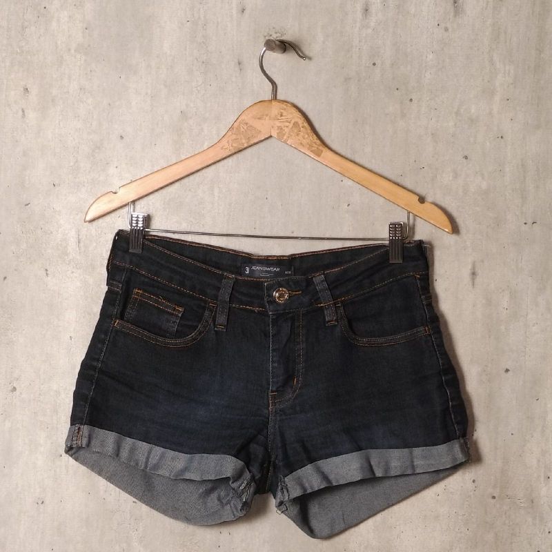Short Preto Jeans Cintura Alta Barra Dobrada Jeans Wear Shorts