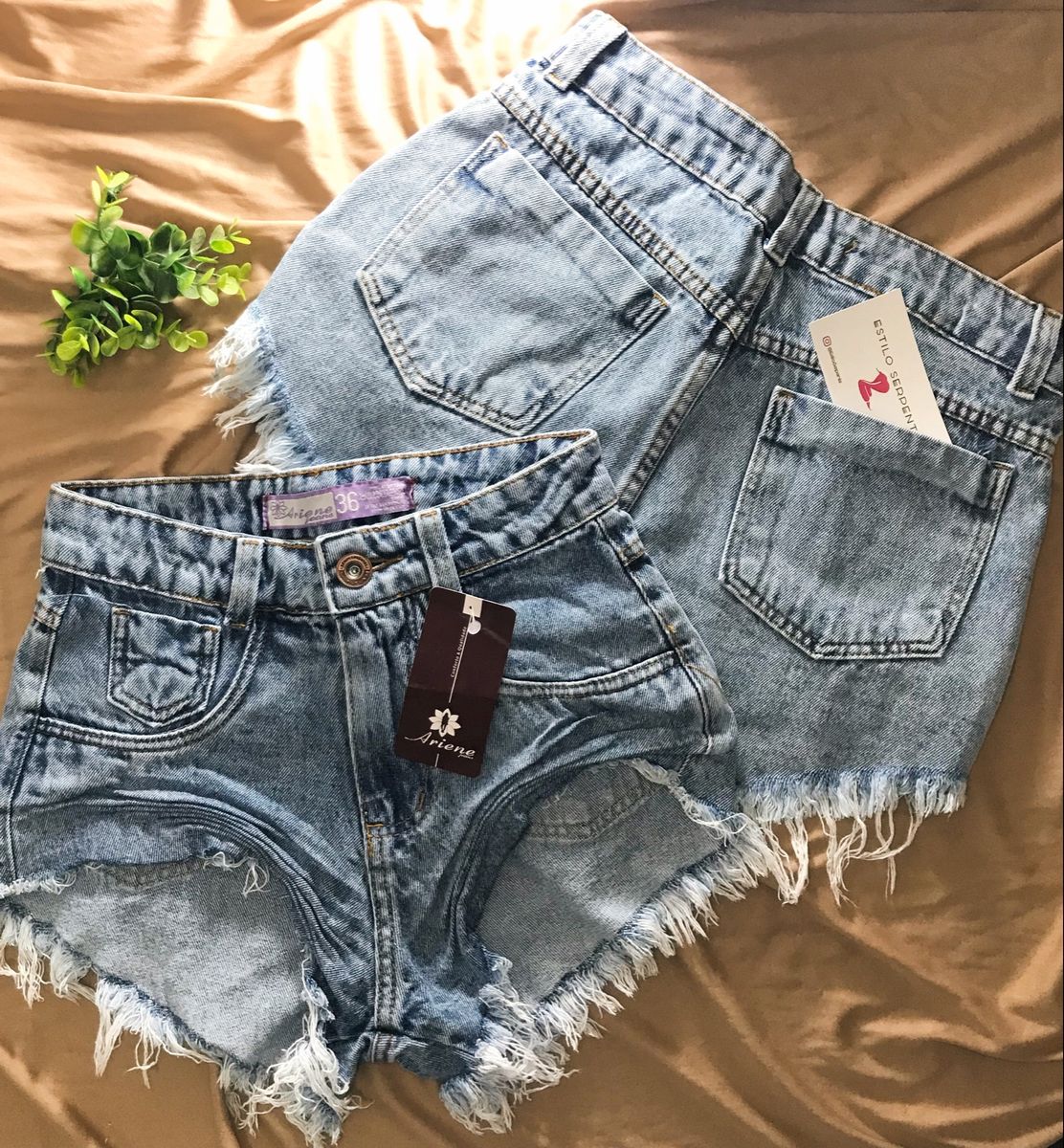 Short Jeans Curto Cintura Alta Lycra Lan amento Shopee Brasil