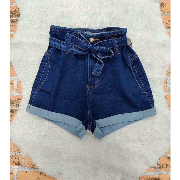Shorts jeans escuro feminino com cinto la o cintura alta R