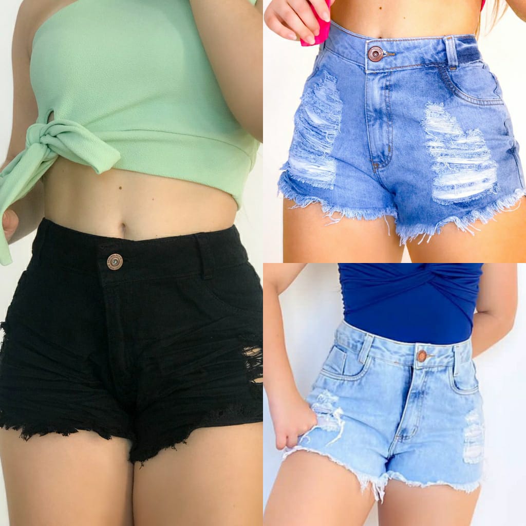 Fotos de shorts jeans cintura clearance alta preto, Shorts Jeans Feminino Cintura Alta Preto Desfiado Perna Hot Pants clearance
