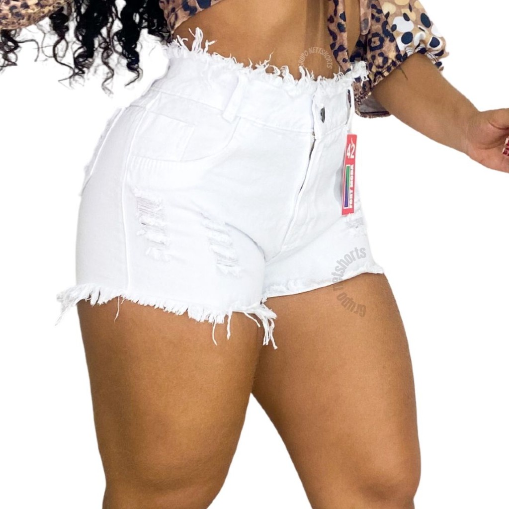Short Jeans Luxo Feminino Cintura Alta Branco Destroyed Shopee
