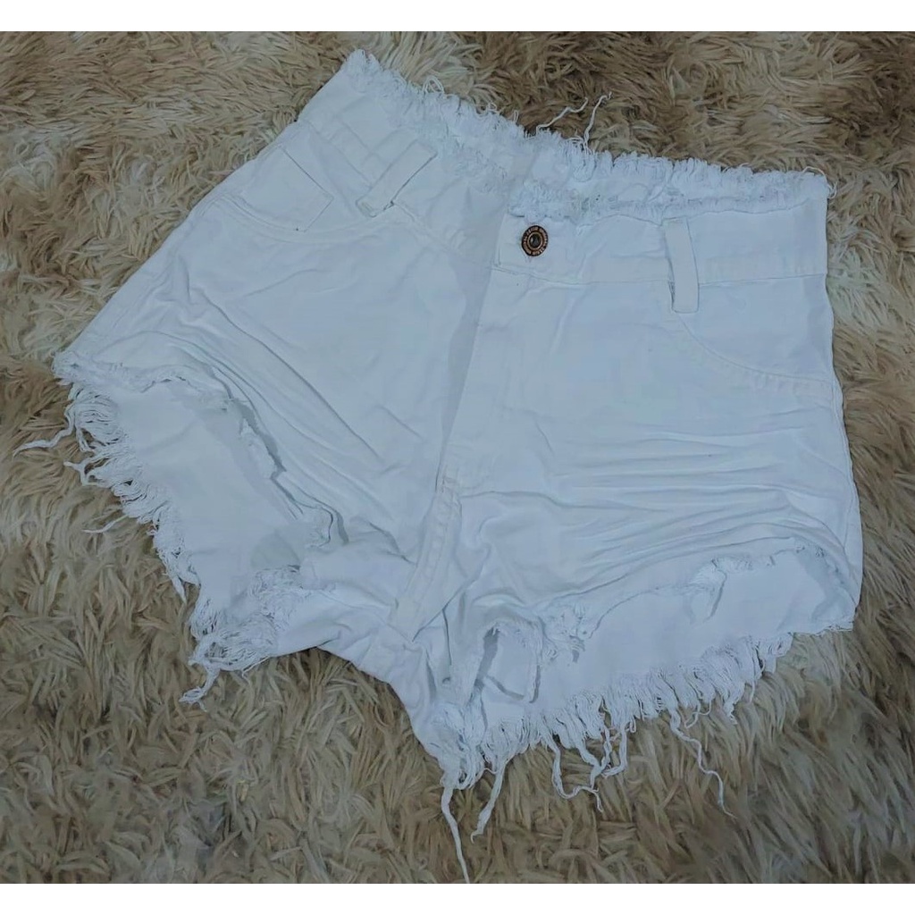 Short Jeans Branco Cintura Alta Desfiado Shopee Brasil